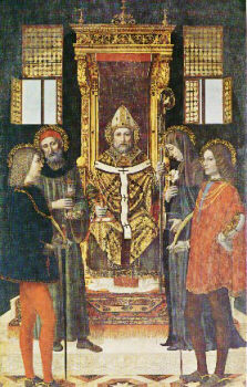 Sant'ambrogio in cattedra tra i santi Gervaso, Satiro, Marcellina e