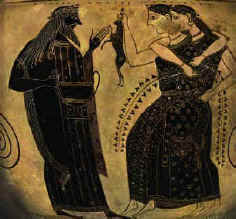 ![]() Dioniso con due Menadi, Pittore di Amasi. Parigi, Biliotéque Nationale. |