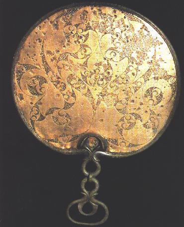 Nelle tombe delle donne sono stati ritrovati numerosi esempi di gioielli e oggetti di uso domestico. Alcuni degli articoli di migliore fattura sono rappresentati da specchi derivati da modelli etruschi e molto diffusi soprattutto nella Britannia romana. Ci sono pervenuti una trentina di esemplari risalenti allepoca delloccupazione romana, la maggior parte dei quali presenta elaborati motivi a intreccio.